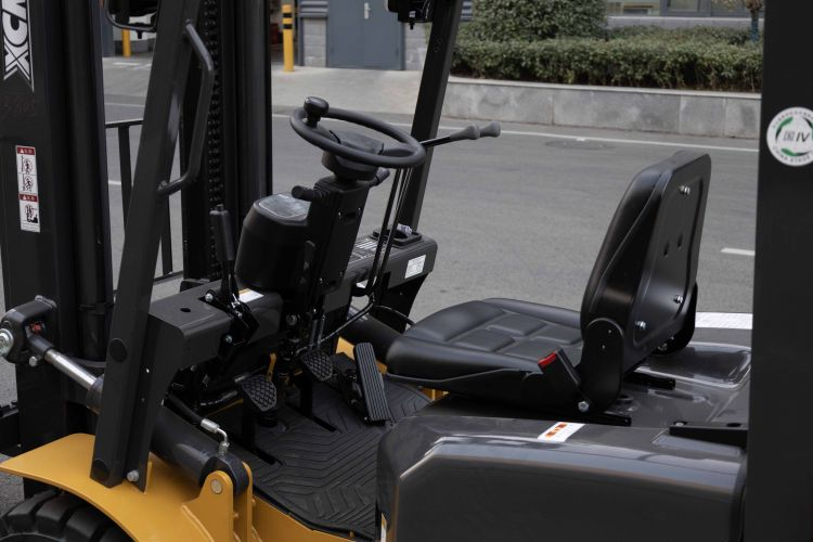 This compact yet robust design allows the forklift to maneuver flexibly within warehouses and workspaces with limited area.
